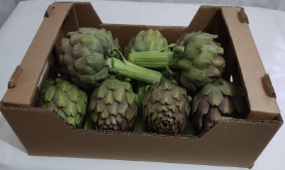 Artichauts tunisiens frais et tendres. Leurs capitules charnus offrent une chair délicate et savoureuse. Riches en antioxydants et en fibres, les artichauts sont excellents grillés, farcis, en vinaigrette ou dans diverses préparations culinaires. Conditionnement en boîtes de 4,5 kg.