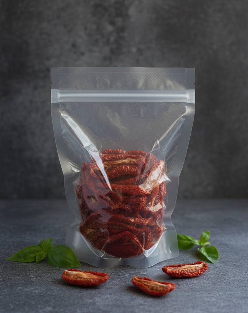 Tomates séchées au soleil tunisiennes, sélectionnées à pleine maturité et séchées naturellement pour concentrer leurs arômes et leur douceur. Conservées dans l'huile d'olive avec herbes aromatiques, ail et piment pour une saveur méditerranéenne authentique. Texture fondante et polyvalentes en cuisine : parfaites pour salades, pâtes, pizzas, sandwichs et antipasti.