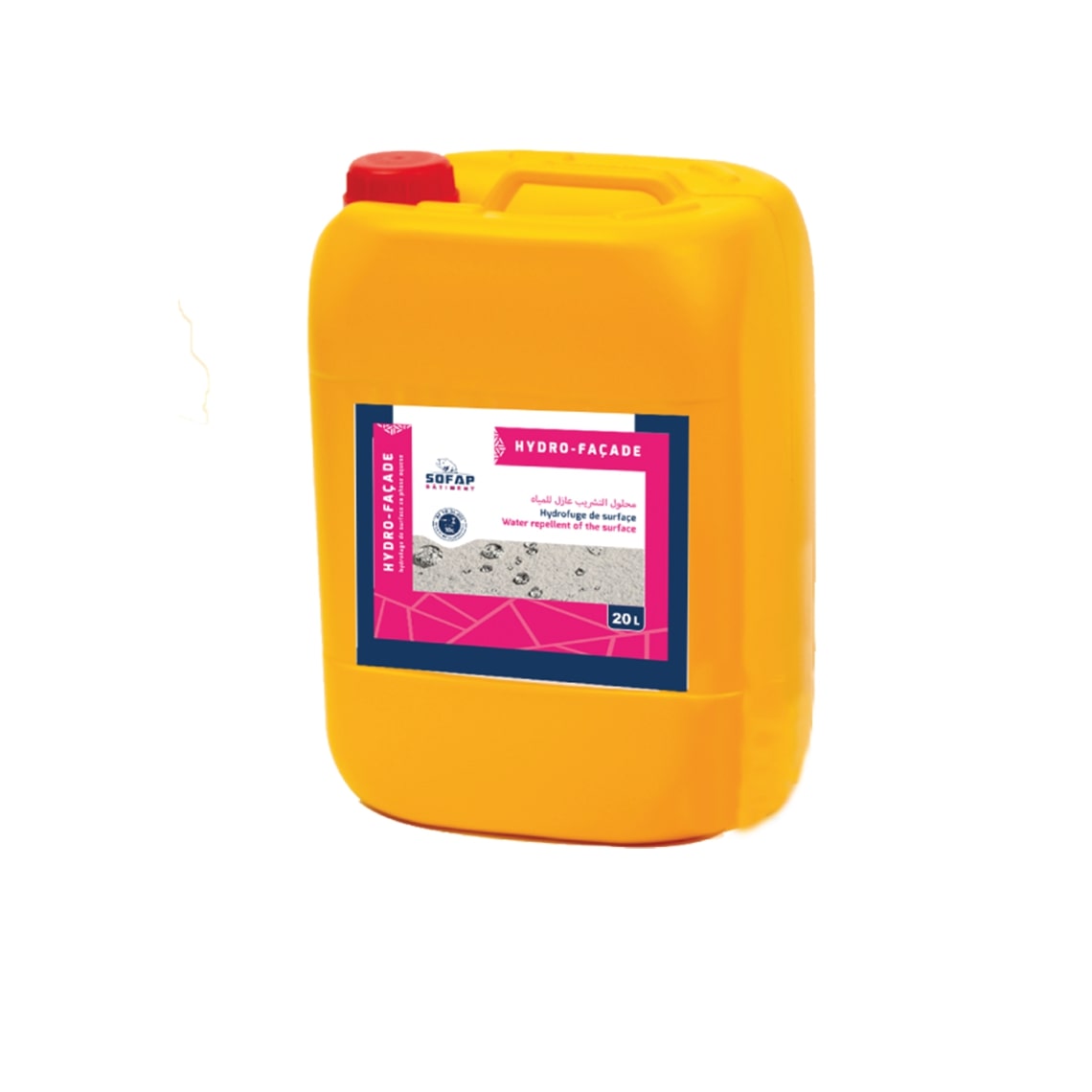 HYDRO-FAÇADE est une imprégnation en phase aqueuse, prête à l'emploi, destinée à l'hydrofugation des façades et des toitures en extérieur. HYDRO-FAÇADE forme une barrière efficace contre la pénétration de l'eau (pluies) et les agressions atmosphériques sans empêcher les échanges gazeux.