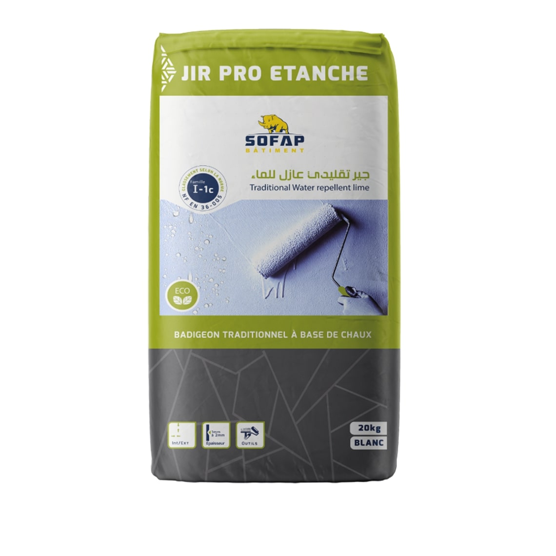 JIR PRO ETANCHE est une peinture badigeon minérale en poudre pour façades et toitures à base de chaux aérienne.