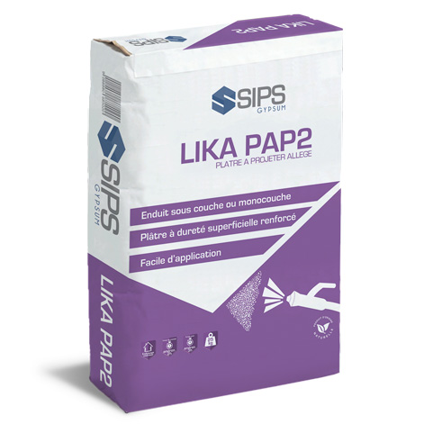 LIKA PAP2 est un plâtre à projeter blanc, produit à partir du gisement de gypse naturel pur, d'une cuisson et des traitements appropriés.