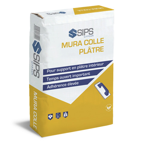 MURACOLLE PLÂTRE est un mortier de collage pour les faïences sur tout support en plâtre. Il est produit à partir du gisement de gypse naturel pur ayant subi une cuisson et des traitements appropriés et de charges minérales naturelles pures.