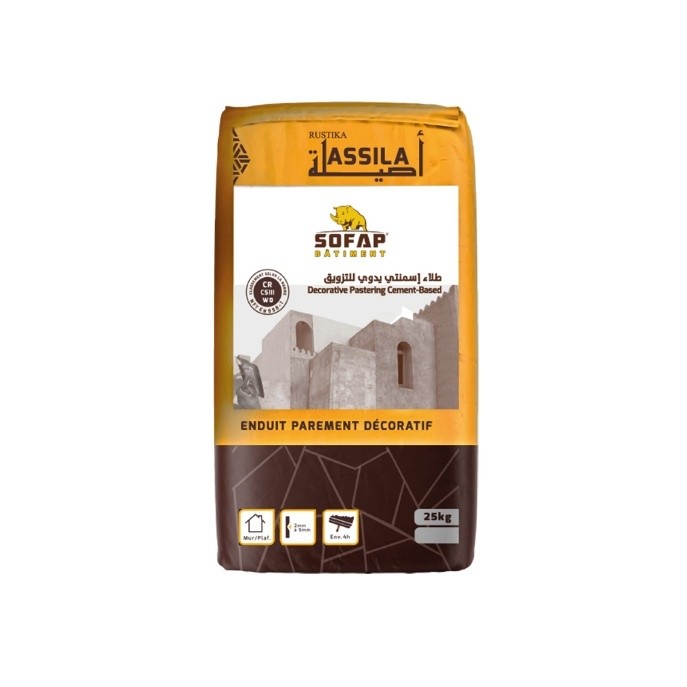ASSILA est un enduit MONOCOUCHE de parement décoratif, non hydrofuge pour application manuelle sur les murs extérieurs et intérieurs.