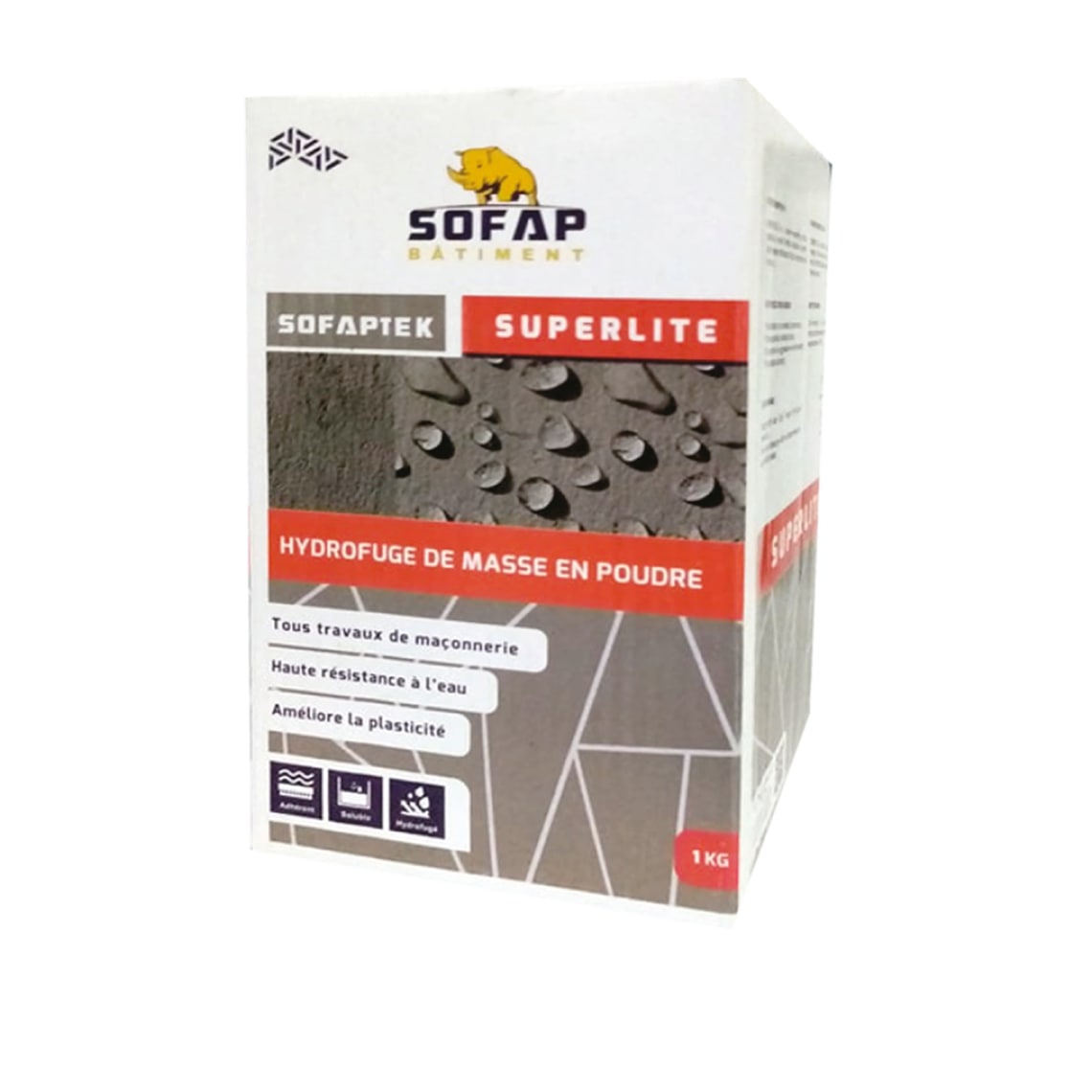 SUPERLITE est un additif hydrofuge de masse qui permet de limiter les remontées capillaires et les infiltrations d'eau dans les bétons et mortiers.