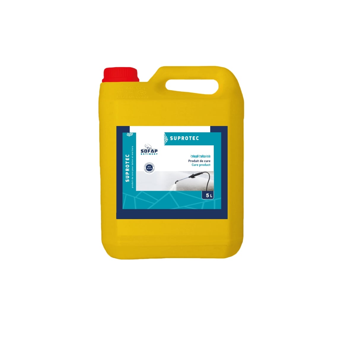 SUPROTEC est un produit de cure en phase aqueuse pour l'application sur les surfaces des bétons (ou des mortiers) exposées aux agents atmosphériques permet de s'opposer à l'évaporation de l'eau pendant la phase de prise et de durcissement.