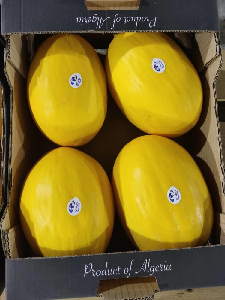 Melon jaune sucré et parfumé, à la chair tendre et juteuse. Sa peau jaune dorée cache une chair savoureuse qui ravira les amateurs de melons. Disponible en 2 formats différents pour s'adapter à tous les besoins : format caisse (400 kg, pièces de 2-3,5 kg) et format boîte (4 pièces de 1,5-2 kg chacune).